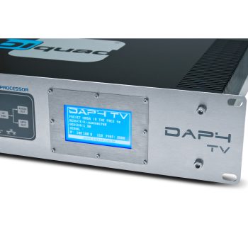 No painel frontal, dispõe de encoder rotativo, display OLED de alto contraste e porta USB, permitindo acesso rápido às configurações e comunicação direta com PC. O produto acompanha software de controle baseado em PC, com interface intuitiva e completa para ajustes finos de processamento, entradas, saídas e monitoramento.